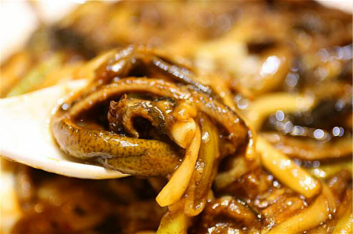 鱼类菜真正考验的就是食材,不需要复杂的烹饪方法与调料,食材的品质决定一切。还有一道“皮条鳝鱼”,也很简单,鳝筒挂浆,下油锅炸得外酥里嫩,浇糖醋汁即成。好吃的关键是要用肥美的鳝鱼,否则薄兮兮的鳝筒过油之后味同嚼蜡。
